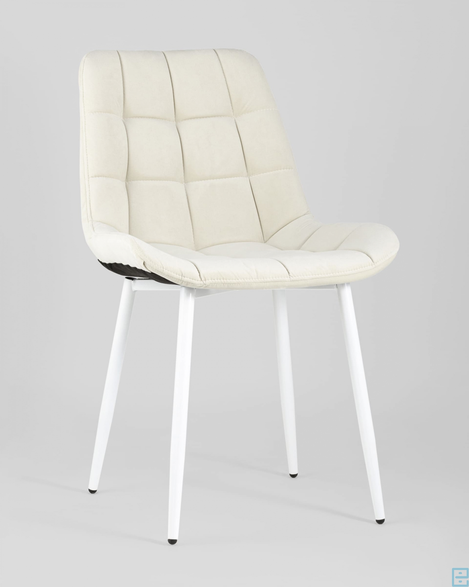 Обеденный стул в мягкой обивке из велюра без подлокотников. Ножки белые, изготовлены из металла. Удобная форма сиденья, поддерживающая спинка. Лаконичный дизайн стульев подойдет к обеденному столу любого дизайна.