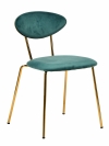 Стильный стул с металлическим каркасом золотого цвета. Обивка выполнена из мягкого велюра. Широкое сиденье обеспечивает удобную посадку и уют. Такая модель стула прекрасно дополнит интерьер кухни или гостиной в современном стиле.