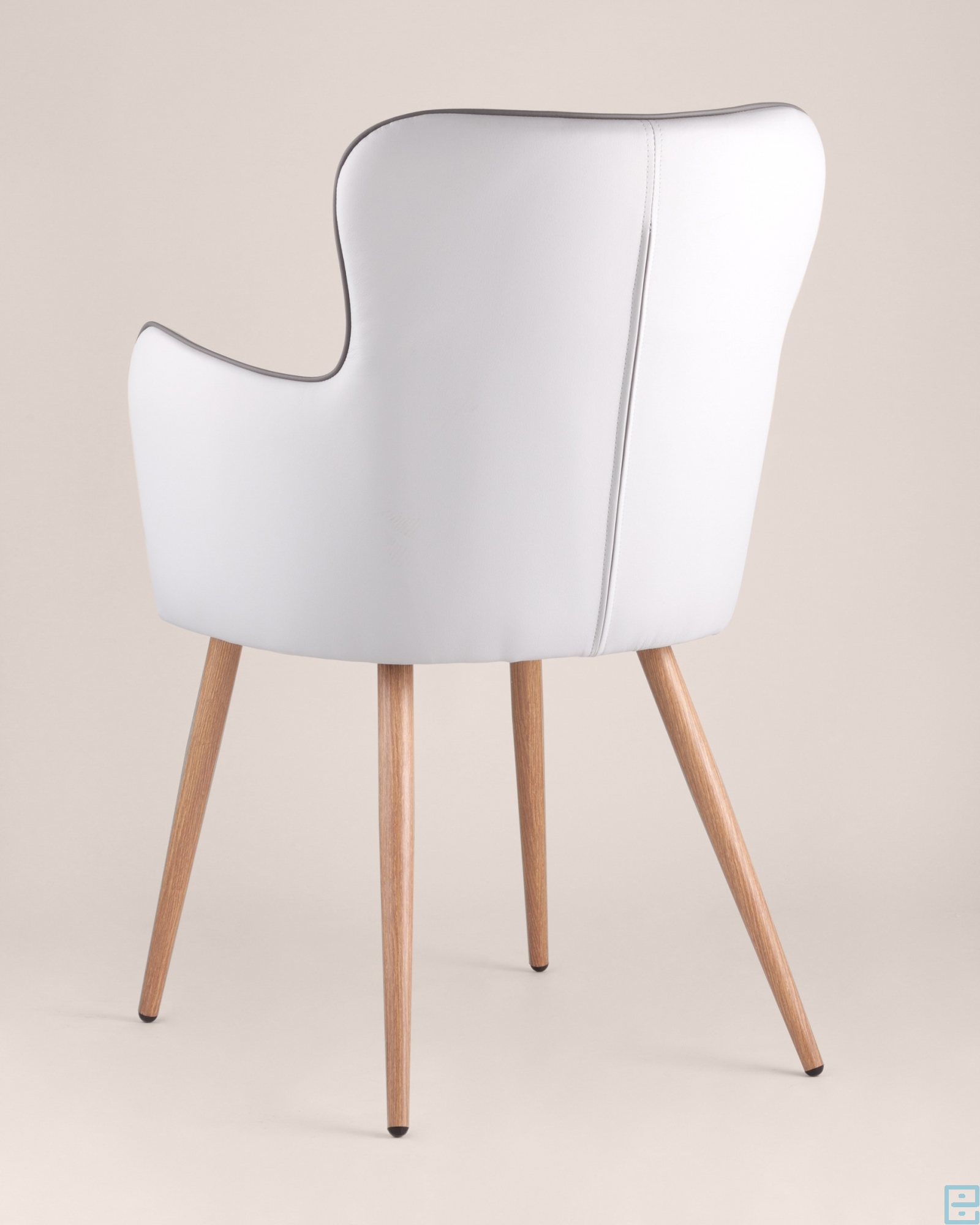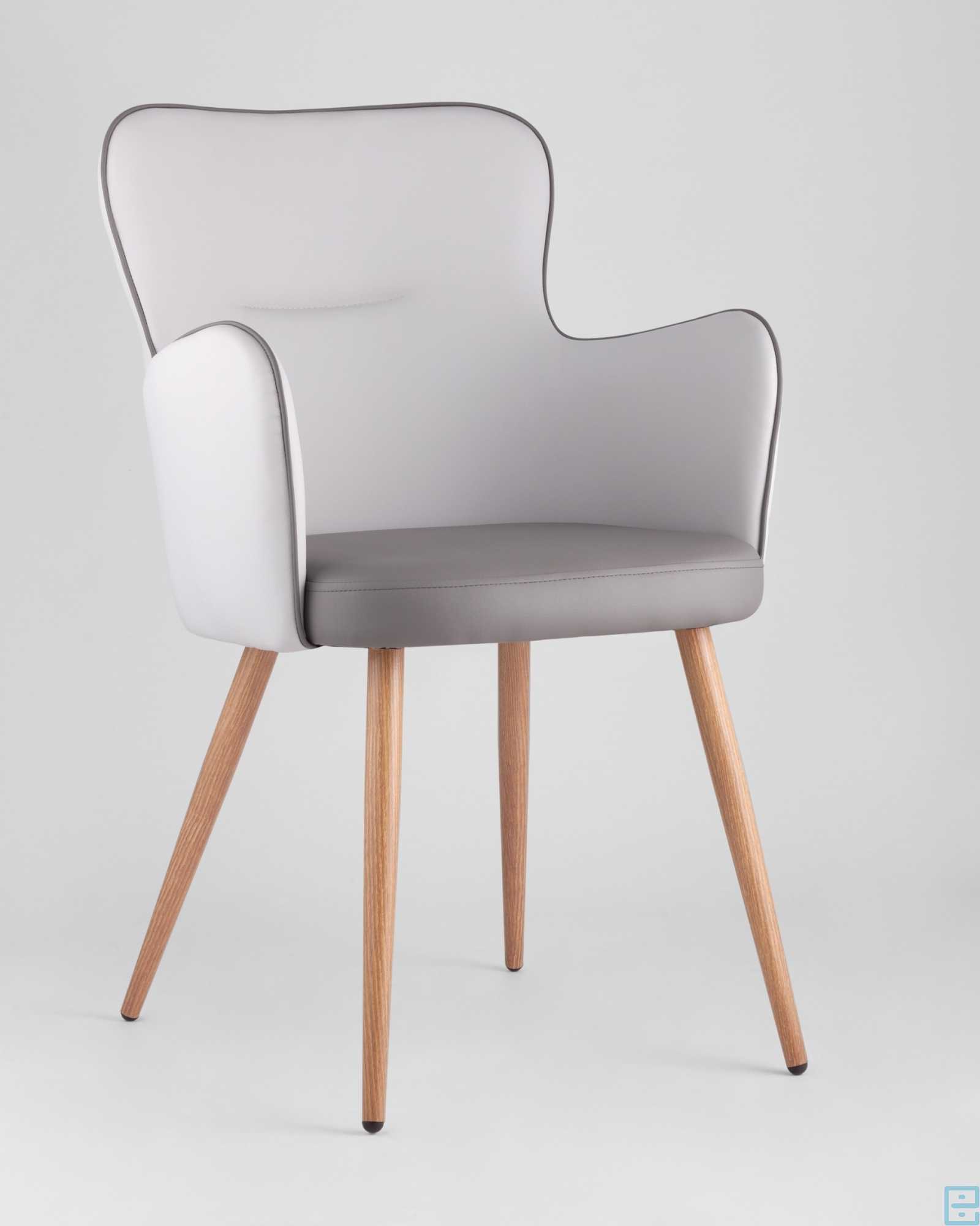 Стильный и мягкий стул имеет широкую эргономичную спинку и удобные подлокотники. Обивкой послужила высококачественная PU кожа. Ножки металлические с принтом под дерево.