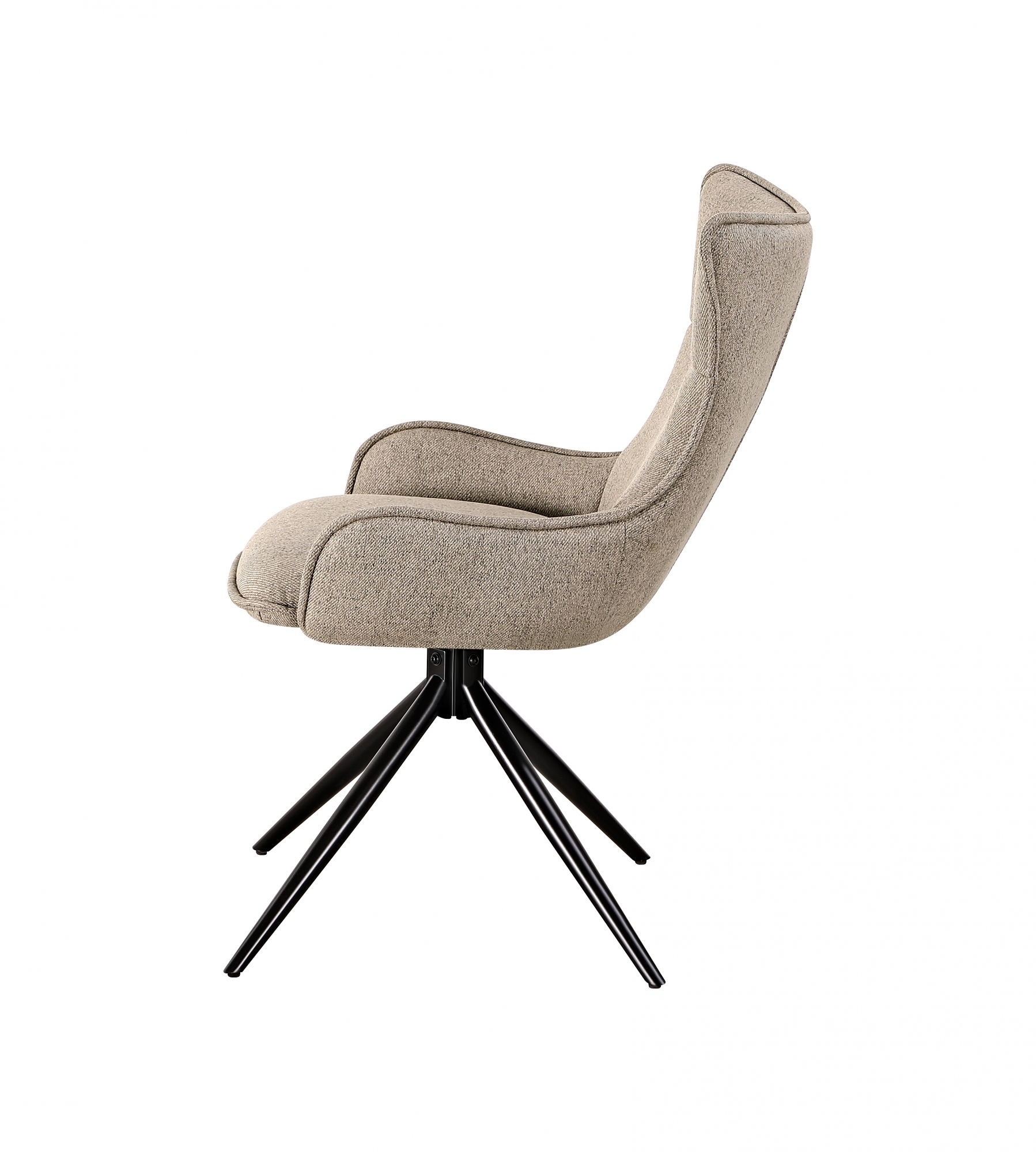 Обеденный стулIrigo это элегантное и эргономичное решение для тех, кто ценит комфорт и минимализм. Лаконичный силуэт с высокоизогнутой спинкой придаёт модели особый шарм. Серо-бежевый оттенок делает стул универсальным для любого интерьера от домашней кухни до лаунж-зоны в офисе. Комфорт на каждый день Обивка выполнена из мягкой и приятной на ощупь ткани рогожки, прочного и износостойкого материала. Эргономичная форма спинки и сиденья обеспечивает комфорт при длительном сидении. Модель оснащенаповоротно-возвратным механизмом 180, позволяющим свободно поворачиваться и автоматически возвращаться в исходное положение это удобно и практично в ежедневном использовании. Прочность и надёжность Каркас изготовлен из прочногометалла, окрашенного в чёрный матовый цвет. Тонкие, но устойчивые ножки обеспечивают надёжную опору, а качественные материалы позволяют выдерживать нагрузку до120 кг. Универсальное применение Благодаря нейтральному оттенку и современному дизайну, стулIrigoподойдёт для самых разных пространствкухни, балкона, гостиной, кафе, офисаУсловия покупки
