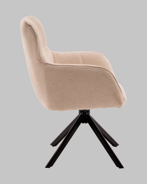 Обеденный стулEdme это стильный акцент для любого интерьера. Светлая рогожка, плавные линии корпуса и устойчивое металлическое основание делают эту модель отличным решением для кухни, гостиной, офиса или кафе. Комфорт и функциональность Мягкое сиденье и эргономичная спинка обеспечивают удобную посадку, австроенный пружинный блокотвечает за дополнительную упругость и долговечность конструкции. Стул выдерживает нагрузку до120 кг, сохраняя устойчивость и форму даже при ежедневной эксплуатации. Вращающийся механизм с возвратом Модель оснащенаповоротно-возвратным механизмом на 180, благодаря которому стул автоматически возвращается в исходное положение. Это особенно удобно для обеденных и переговорных зон. Практичные материалы Обивка изрогожкине только приятна на ощупь, но и устойчива к износу. Материал легко очищается от загрязнений, а благодаря плотной текстуре сохраняет презентабельный внешний вид. Основание выполнено из прочногометаллас порошковым покрытием в чёрном цвете, которое устойчиво к царапинам и сколам.Условия покупки