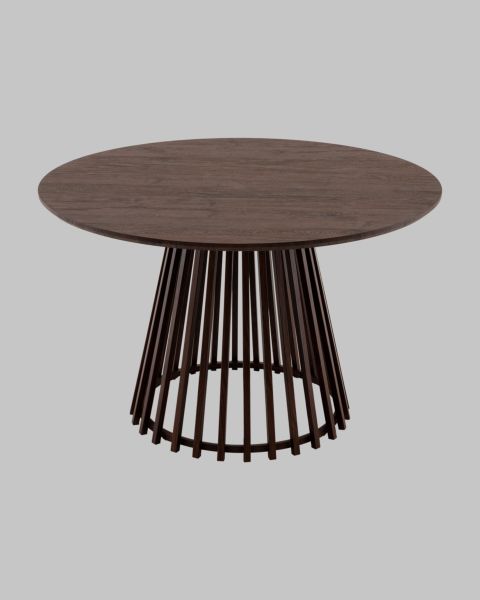 Стол обеденный Daphne элегантность и стиль для вашего интерьера. Материалы и дизайн.Столешница стола выполнена из высококачественного МДФ с покрытием 3D бумагой толщиной 2.5 см. Круглая форма в сочетании с уникальной металлической ножкой создают стильный и изысканный образ. Цвет ореха прекрасно гармонирует с любым интерьером, от классических до современных. Надежность и удобство.Стол придется по душе каждому благодаря своему неповторимому стилю и устойчивости способен выдерживать нагрузки до 100 кг. Диаметр стола 120х120 см и высота 75 см идеально подходят для комфортной обеденной зоны. Качественная отделка и прочная конструкция делают его отличным выбором для повседневного использования. Универсальность и применение.Современный стиль и минималистичный дизайн позволяют ему легко вписаться в различные интерьеры от домашних кухонь и гостиных до кафе и ресторанов.Условия покупки