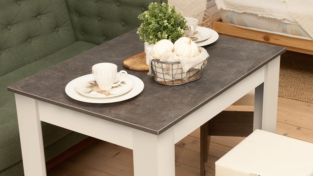 Столы Промо тип 1 это компактные и удобные модели нераздвижных обеденных столов, которые, благодаря простым лаконичным формам и многообразию цветового исполнения гармонично впишутся в любой интерьер кухни. Яркий дизайн.Для столов выбрано эффектное контрастное сочетание оттенков имитирующая камень текстура Ателье темный в комбинации с белым цветом создают потрясающий внешний вид. Дуб Сонома/Белый - классическая композиция, сочетающая в себе древесные волокна. Сочетание текстур Ателье темный и Дуб крафт золотой, несомненно, оценят любители стильных и необычных решений в интерьере. Также в вариантах декора присутствует белое исполнение, которое отлично впишется в любой стиль. Дополнительную выразительность придают модели оригинальные ножки, выполненные в форме уголка. Компактность.Малогабаритные размеры позволяют найти место для стола даже в небольшой кухне или на террасе. Небольшой вес делает изделие достаточно мобильным, его несложно передвинуть во время уборки. Лучшая цена.Столы Промо - это стильное и практичное решение для небольшой современной кухни по лучшей цене.Условия покупки