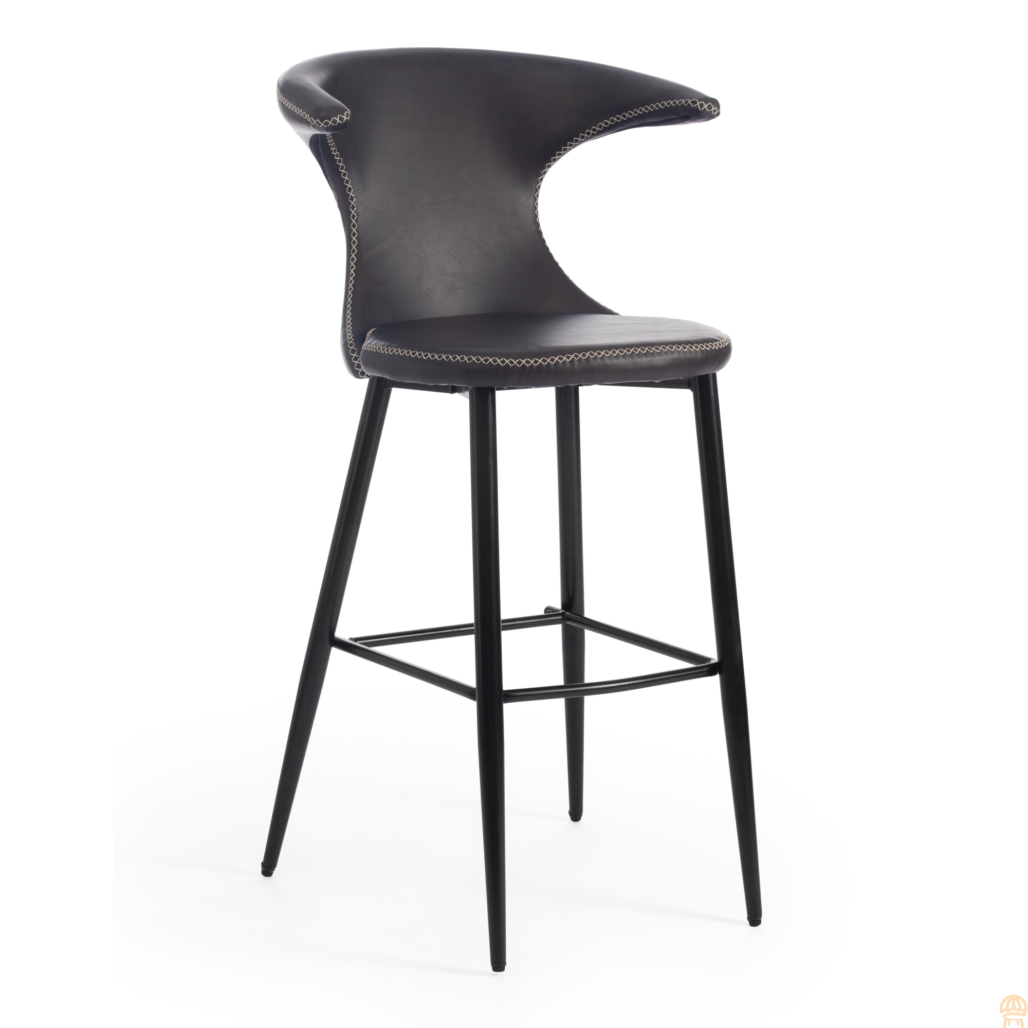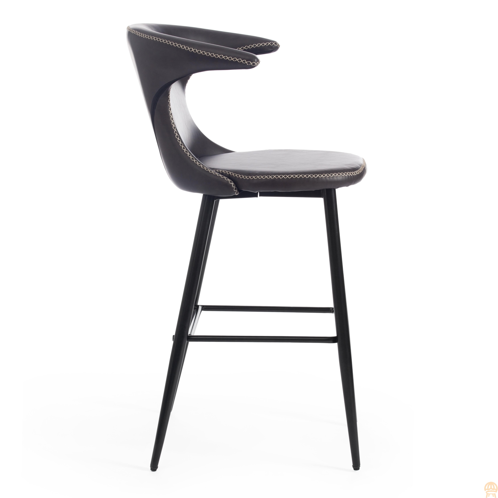 Оригинальный дизайн барного стула FLAIR BAR из коллекции Modern позволит привлечь внимание и сделать яркий акцент в вашем интерьере. Стул способен придать индивидуальность интерьеру пространству, выделить его из сотен обыденных и привычных стульев. Идеальное решение для гостиной, бара и кафе. Оригинальная форма спинки, черные металлические ножки и обивка из серой экокожи с красивой отделочной строчкой подчеркивают неповторимый облик изделия. Удобная форма спинки, мягкое сиденье и подставка для ног обеспечат комфорт на протяжении длительного времени. Экокожа не мнётся, не меняет форму, проста в уходе. Металлический каркас отличается прочностью, устойчивостью к износу и долговечностью. Стул не требует специального ухода и будет долгое время радовать вас своим первоначальным видом. Стул хорошо подойдет для гостиной, для кухни, для бара, для ресторана или для кафе. Стул очень прост в сборке, инструкция по сборке прилагается. Страна-производитель: КИТАЙ