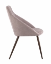 Стильный и мягкий стул для кухни имеет широкую эргономичную спинку и удобные подлокотники. Обивкой послужила высококачественная плотная ткань. Ножки металлические с принтом под дерево.