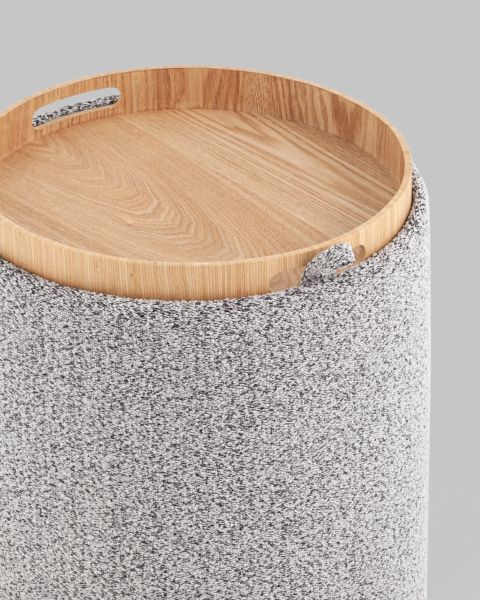Мягкий пуф с ящиком станет незаменимым украшением интерьера. Он не только удобный, но и функциональный. Благодаря двухсторонней крышке, пуф можно трансформировать в журнальный столик. Столешница выполнена из светлого дерева с бортиками по краям и вырезными ручками для удобства, и безопасности при использовании. Крышка пуфика полностью съемная и при необходимости её можно использовать как поднос. Полезное дополнение - ящик для хранения различных мелочей, внутри обит тканью. Компактный и вместительный, такой пуфик наполнит пространство особым уютом и теплом. Подойдет для любого интерьера - как в классическом стиле, так и в современном. Мягкая обивка выполнена из стильной ткани букле. Прочный каркас из фанеры не утяжеляет изделие и выдерживает нагрузку до 150 кг. Небольшие подпятники в основании пуфа защищают напольные покрытия от царапин и предотвращают скольжение. Высота пуфа 38 см. Диаметр 34,5 см.Условия покупки