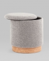 Лаконичный пуф в современном стиле. Обивка выполнена из ткани букле - очень мягкий и приятный на ощупь материал. Прочный каркас из фанеры выдерживает нагрузку до 150 кг. Основание из светлого массива дерева гармонично сочетается с обивкой. Пуф оснащен вместительным ящиком для хранения различный мелочей. Отличное функциональное дополнение для детской или спальни.Условия покупки