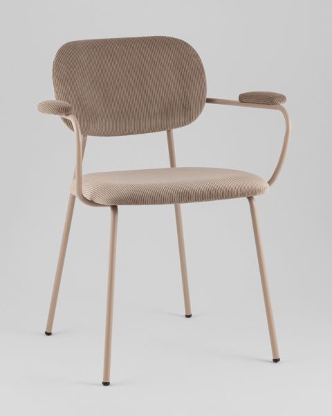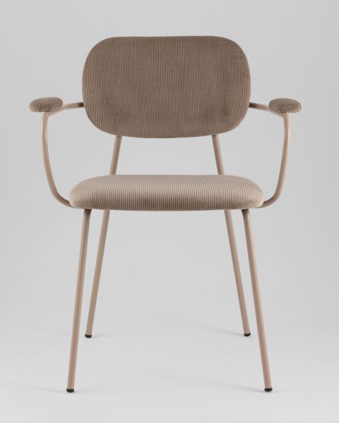 Стул Кэрол современное решение для вашего интерьера. Материалы и конструкция. Оснащен прочным металлическим каркасом бежевого цвета, который обеспечивает отличную устойчивость. Обивка выполнена из мягкого вельвета коричневого оттенка, создающего приятные тактильные ощущения. Защитные накладки на ножках предотвращают повреждения пола от царапин. Дизайн и комфорт. Мягкое сиденье в сочетании с удобной широкой спинкой обеспечат удобную посадку и уют даже при длительном использовании.Металлический каркас огибает спинку и плавно переходит из подлокотников в ножки. На подлокотниках для дополнительного комфорта предусмотрены мягкие накладки. Прочность и надежность. Способен выдержать нагрузку до 150 кг, что гарантирует его долговечность и безопасность. Вес стула составляет 6 кг, что делает его удобным для перемещения. Место использования. Стул Кэрол станет отличным дополнением к кухне, гостиной, офису или кафе. Его универсальный и элегантный дизайн гармонично впишется в любой современный интерьер.Условия покупки