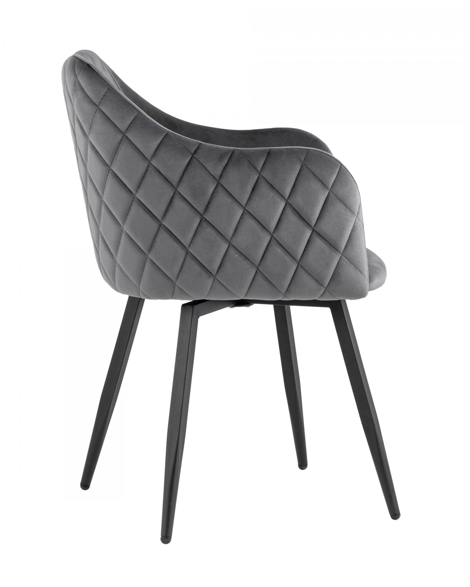 Комплект из двух стульев. Мягкий стул с округлой спинкой анатомической формы и удобными подлокотниками подарит комфорт и уют. В качестве обивки используется велюр - прочный износостойкий и приятный на ощупь материал. Внешняя сторона спинки и подлокотников имеет декоративную строчку в виде ромбов. Прочные ножки выполнены из металла в черном цвете, поэтому обеспечивают хорошую устойчивость и делают стул оригинальным. Дополнительная функция вращения сиденья обеспечивает максимальный комфорт. Изделие будет прекрасно смотреться как отдельный предмет мебели, так и в комплекте с обеденным или письменным столом. Велюр - это прекрасный выбор для тех, у кого есть домашние животные. Благодаря плотной структуре и отсутствию выраженного плетения нитей, любимцам сложно зацепиться когтями за обивку. Велюр обладает особенностью "антикоготь", максимально понижая риски повреждения материала. Волокно стула, является антивандальным, устойчивым к царапинам. Позвольте вашим животным насладиться комфортом нашего стула, а вы насладитесь его стильным дизайном и качеством, обеспечивающими его долговечность.Условия покупки