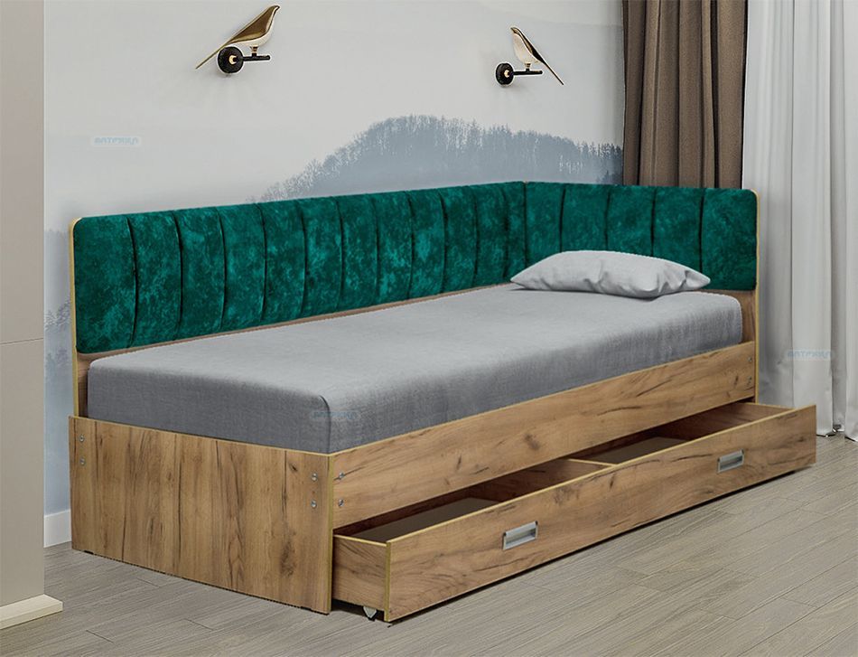 Кровать с продольной мягкой спинкой правая Матрица Софа 15 900х2000 Ясень Анкор светлый Велюр 007 - это качественное изделие производства Матрица, соответствующее современному государственному стандарту.